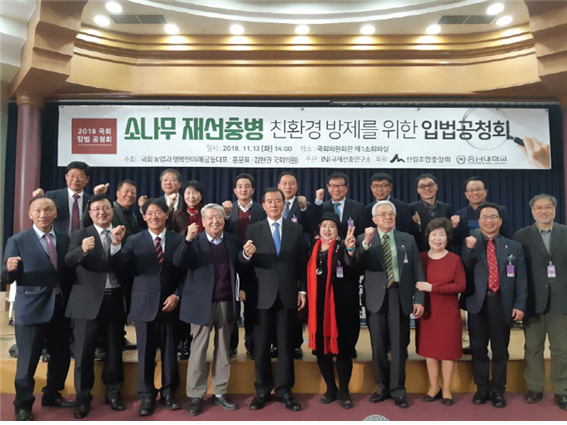 자유한국당 홍문표 의원(홍성예산)이 대표를 맡고 있는 '국회 농업과 행복한 미래'가 주최하고 산림조합중앙회와 충남대가 후원한 '소나무 재선충병 친환경 방제'를 위한 입법 공청회가 성료했다.