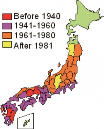 <사진1 : 일본의 소나무재선충 발생지역의 연혁>